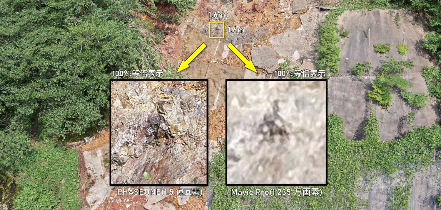 PHASEONE iXM RS-150Fと一眼レフカメラやUAV搭載カメラでの写り方の違いについてまとめました。PHASEONEによる1.5億画素超高解像度による細部の写り方にご注目ください。