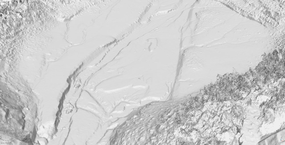 以下の写真は弊社保有の世界初の1億5000万画素高解像度デジタルカメラ「PHASEONE iXM-RS150F」で撮影し、Agisoft Matashape Proにて三次元モデル化したものです。撮影面積A=50,000m2 点群生成密度「中」にて約2億点の点群データです。
